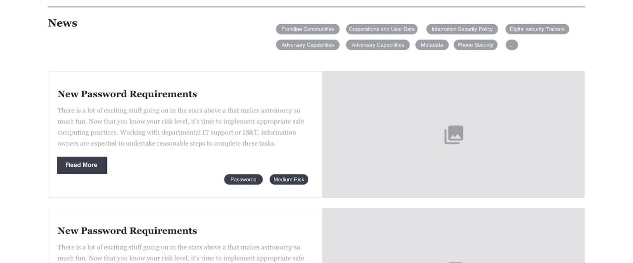 Phase 2: Enhancing the website to provide a guided experience. With the underlying content architecture done, phase two builds an app like experience toward discovering how users can be secure on campus. Allowing the user to be guided, search for specific tasks to complete, or find out more about best practices, all in one MIT IP.